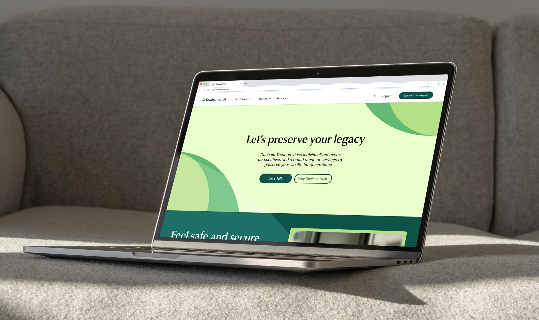 In 40 years, Dunham grew from a single employee to a team of over 100, with two trust companies, clients in 48 states, and $6 billion under advisory. Recognition came from BBC News, Reuters, and The Wall Street Journal. Business success was undeniable, but the brand hadn’t kept pace: touchpoints told no clear story. The identity felt generic, the website outdated and fragmented, and the company’s values were invisible. Through strategy and design, we needed to transform Dunham’s brand to highlight and convey its unique traits of empathy, accountability, and forward-thinking. This repositioning and clarification of identity would give the market a fast, accurate view of who Dunham is, how they are different, and how they can help.